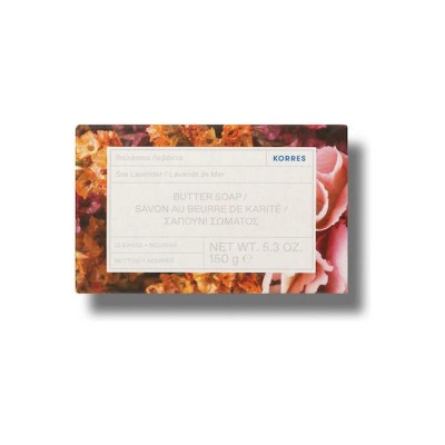 Korres Σαπούνι Sea Lavender 150grΣαπούνι με βούτυρο με λεβάντα θάλασσας KORRES, φρέσκα κομμένα κρίνα που επιπλέουν στο Αιγαίο. Λεπτό και κρεμώδες σαπούνι που καθαρίζει απαλά το σώμα χωρίς να το ξηραίνει.Με βάση 100% φυτικό σαπούνι που προέρχεται από έλαια ελι..